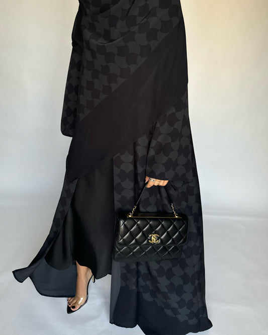 A279 - Black & Gray Half Bisht Pattern Abaya & Matching Head Scarf