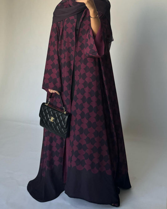 A282 - Shades of Burgundy/ Maroon Half Bisht Pattern Abaya & Matching Head Scarf