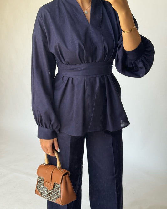 A192 - Navy Blue Summer Linen Set