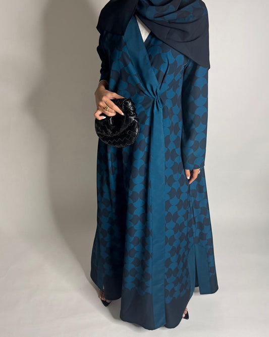 A281 - Shades of Blue Half Bisht Pattern Abaya & Matching Head Scarf