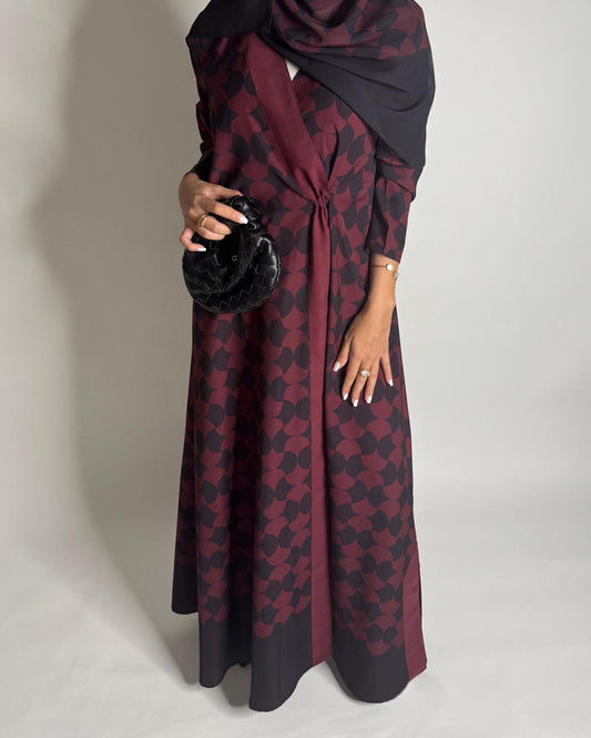A282 - Shades of Burgundy/ Maroon Half Bisht Pattern Abaya & Matching Head Scarf
