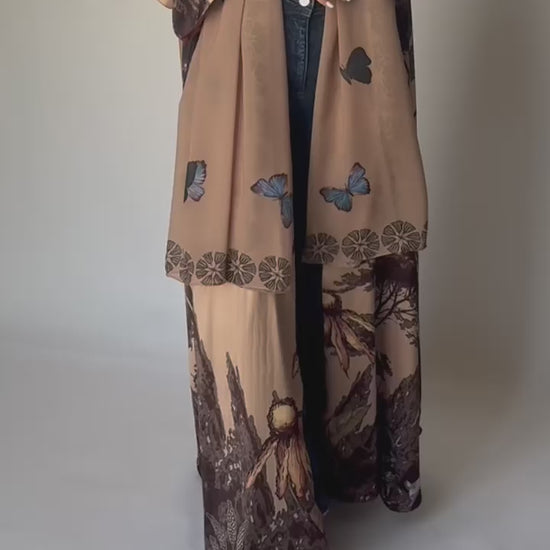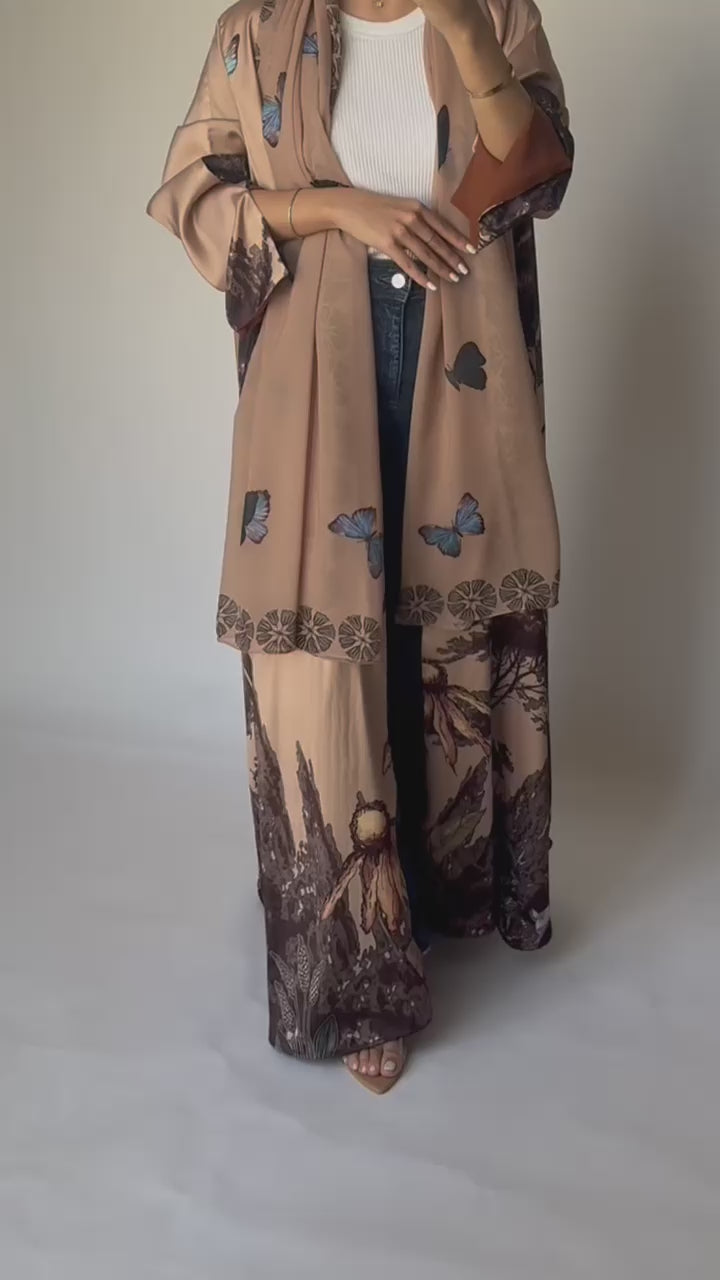 A386 - Sand Brown Butterfly Forest A-Cut Summery Abaya