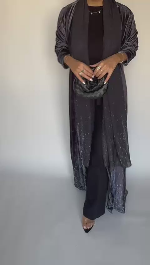 A495 - Galaxy Black Velvet Abaya & Matching Head Scarf
