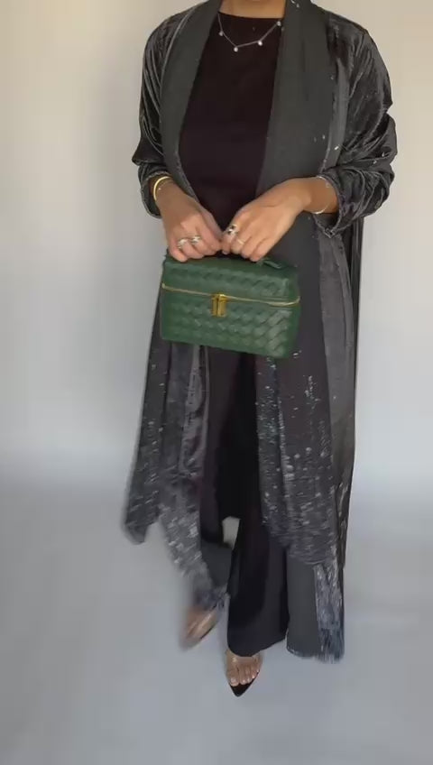 A494 - Galaxy Green to Black Velvet Abaya & Matching Head Scarf