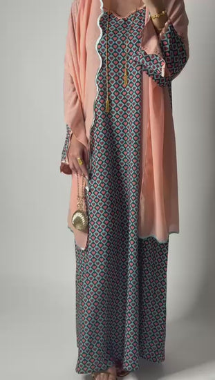 A513 - Blue & Peach Heart Pattern Jalabiya and Head Scarf