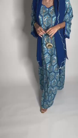A527 - Shades of Blue Hexagon Pattern Jalabiya & Matching Head Scarf