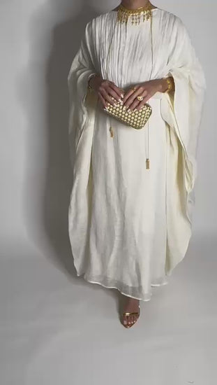 Off-White Linen Over Sized Butterfly Cut Jalabiya (with a hidden inner belt)